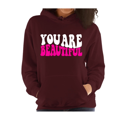 The 'You Are Beautiful' hoodie is perfect for various occasions. Wear it while exercising, during casual outings, or simply as a cozy layer on chilly days. Its inspirational message serves as a reminder to embrace your beauty and positivity, making it a great gift for friends and loved ones.