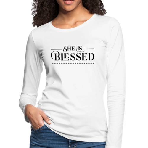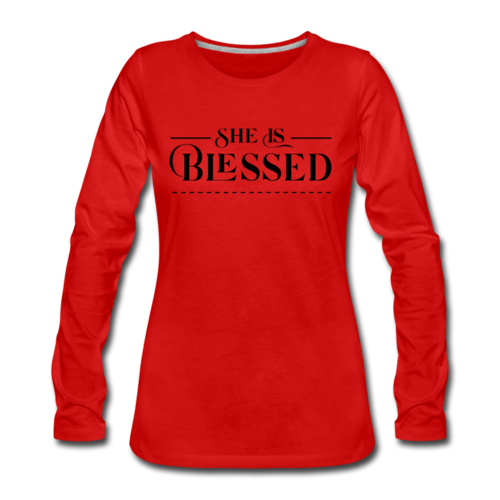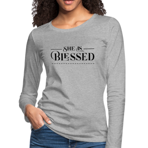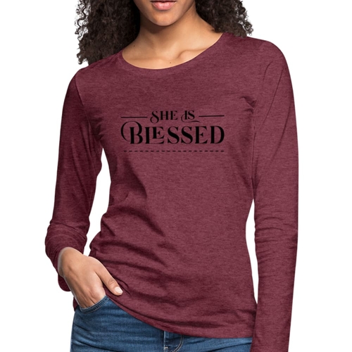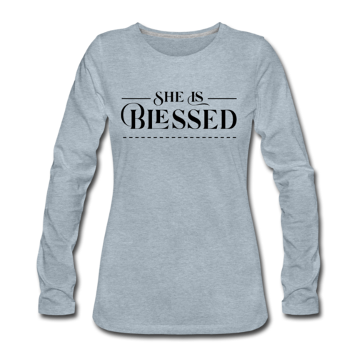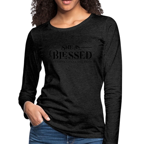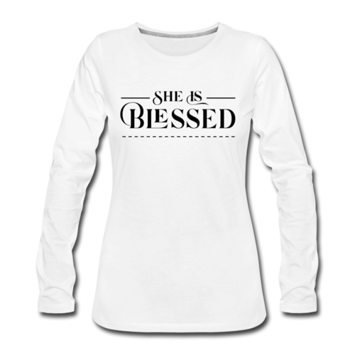 Introducing the Womens Long Sleeve Graphic Tee, a stylish and comfortable addition to your wardrobe. This tee features a beautiful 'She is Blessed' print, making it not only a fashion statement but also a reminder of positivity and gratitude. Crafted from premium materials, this long sleeve t-shirt is designed to be your go-to layer for any occasion.