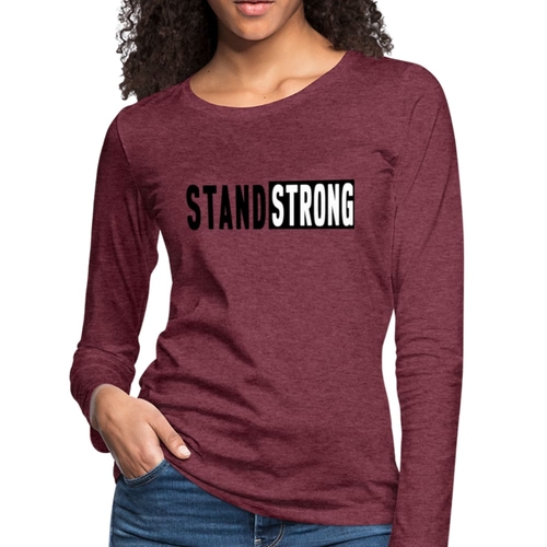 With its combination of comfort, durability, and style, the Womens Long Sleeve Graphic Tee with Stand Strong Print is a must-have addition to your wardrobe. Whether you're looking for a casual outfit or something to express your personality, this tee is sure to become a favorite.