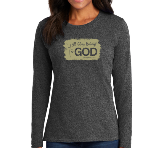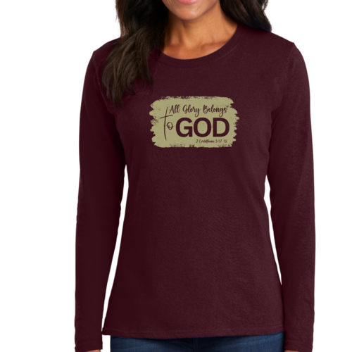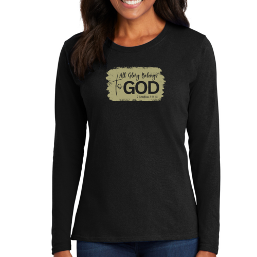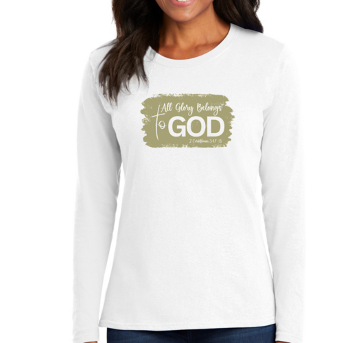 In summary, our Women's Long Sleeve Graphic T-shirt, 'All Glory Belongs to God' in olive, is a must-have addition to your wardrobe. With its comfortable fit, stylish design, and meaningful message, it’s perfect for any occasion. Embrace your faith and fashion with this versatile t-shirt that you can wear all year round.