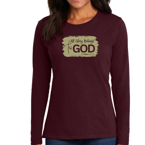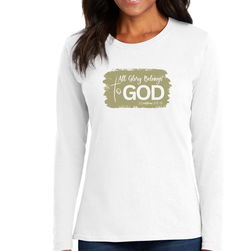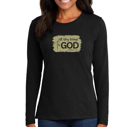 Introducing our Women's Long Sleeve Graphic T-shirt, featuring the inspiring message 'All Glory Belongs to God' in a beautiful olive color. This t-shirt is not just a piece of clothing; it’s a statement of faith and style. Made from soft, breathable cotton, this long sleeve tee is designed to be your go-to choice for any season. Whether you're looking for a cozy shirt for winter, a stylish option for spring, or a perfect fall outfit, this t-shirt has you covered.