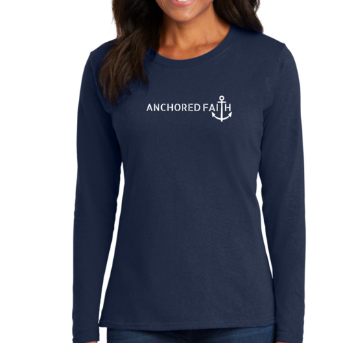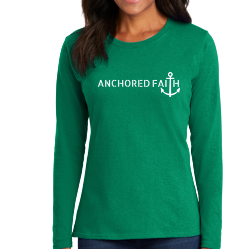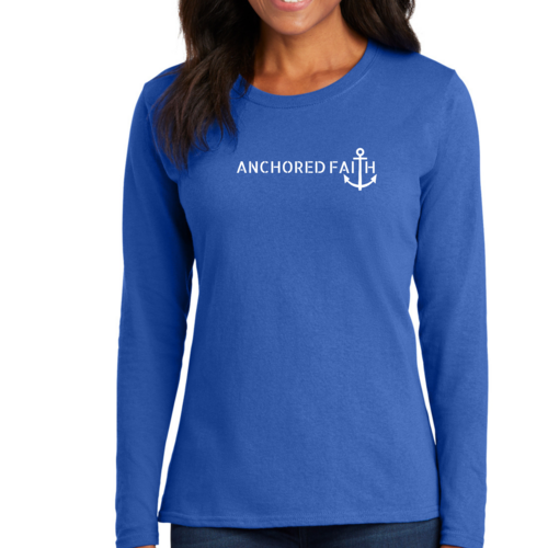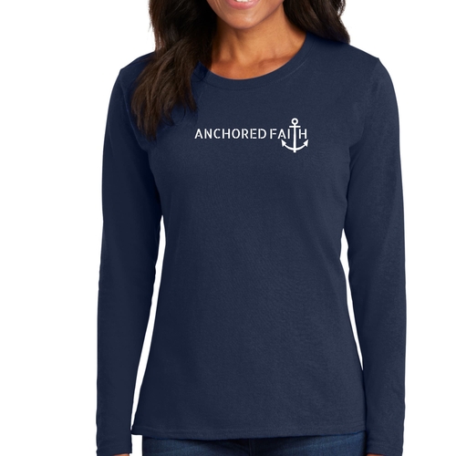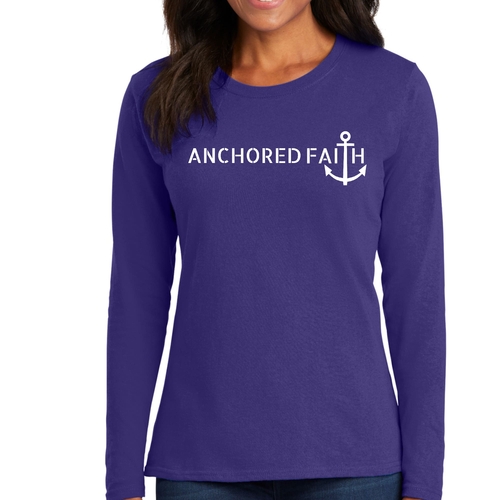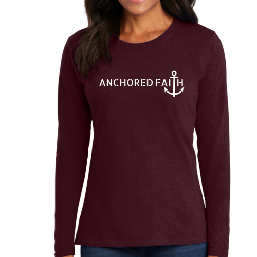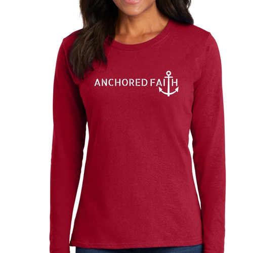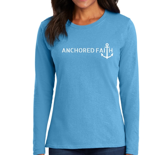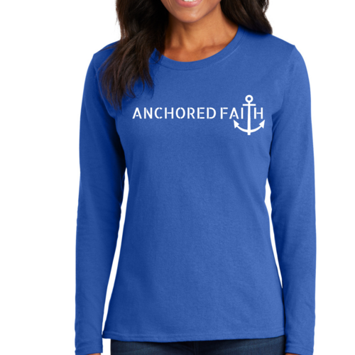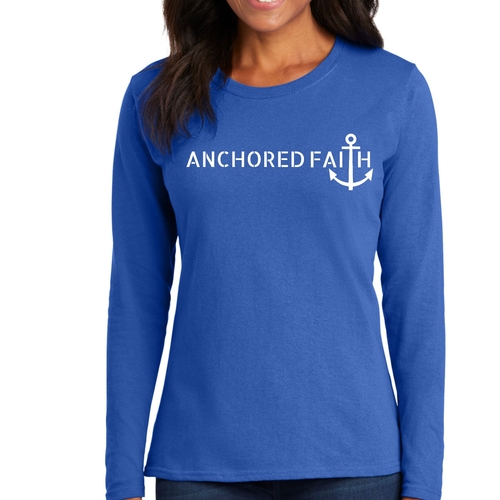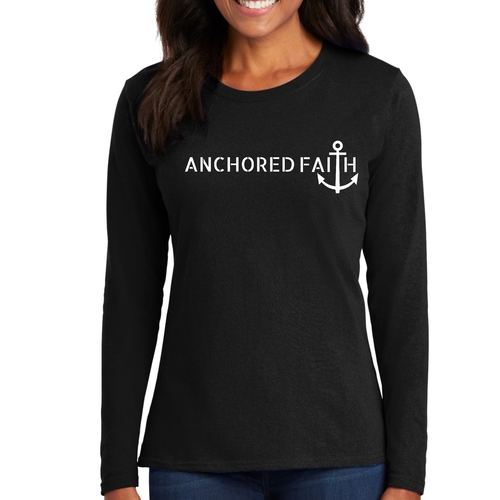 In summary, the Women's Long Sleeve Graphic T-shirt with the Anchored Faith print is a must-have for anyone looking to combine comfort, style, and inspiration. Its soft fabric, classic fit, and meaningful design make it a perfect choice for casual outings, lounging at home, or even as a thoughtful gift for a loved one. Embrace your faith and express your style with this beautiful graphic tee.
