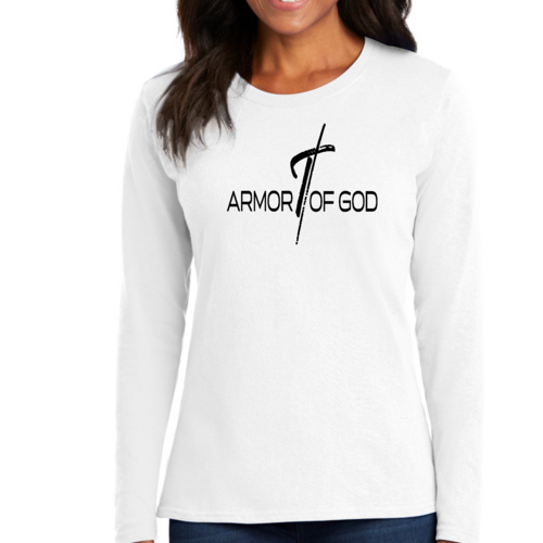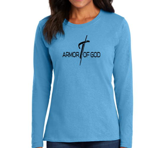 In summary, our Women's Long Sleeve Graphic T-shirt featuring the Armor of God black illustration is a must-have for anyone looking to combine comfort, style, and a meaningful message. With its high-quality materials, thoughtful design, and easy care instructions, this tee is sure to become a favorite in your collection.