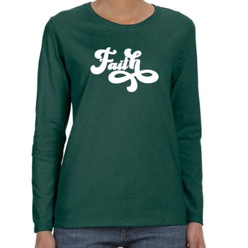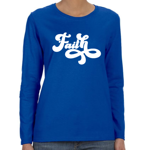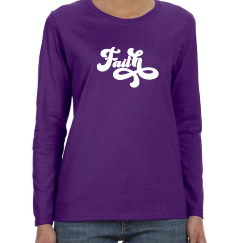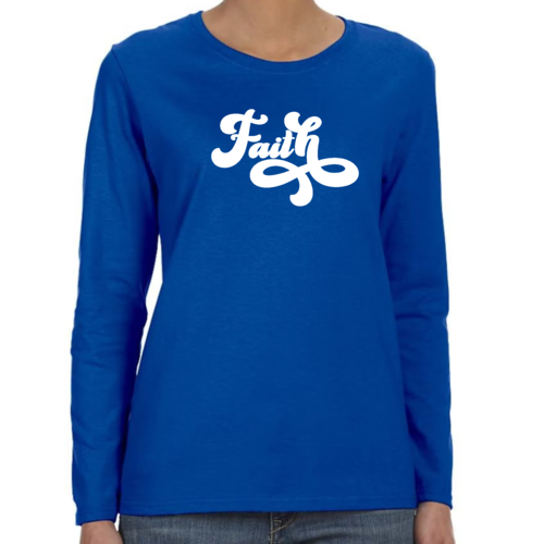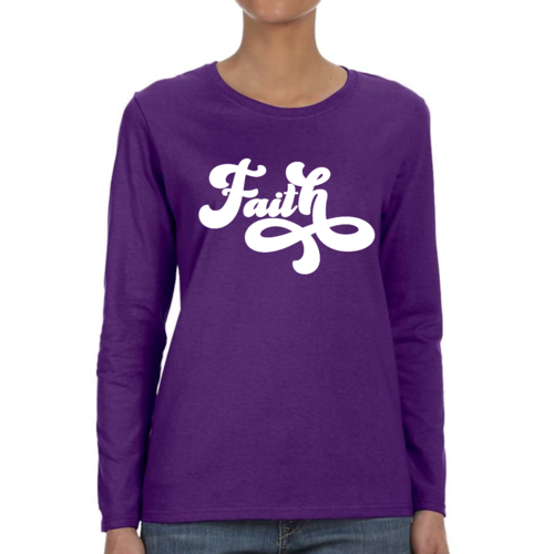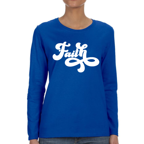 In summary, our Women's Long Sleeve Graphic T-shirt with Faith Script illustration is a must-have for any wardrobe. With its soft cotton material, stylish design, and durable construction, it offers both comfort and fashion. Whether you're looking for a casual tee to wear every day or a special piece to express your faith, this t-shirt is the perfect choice.