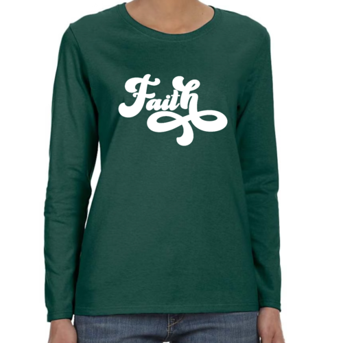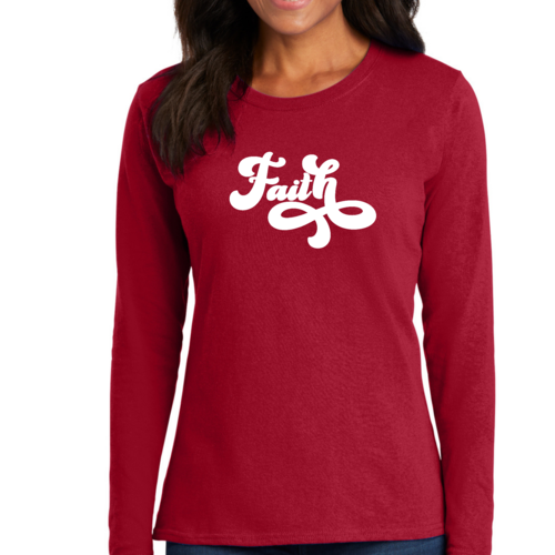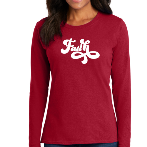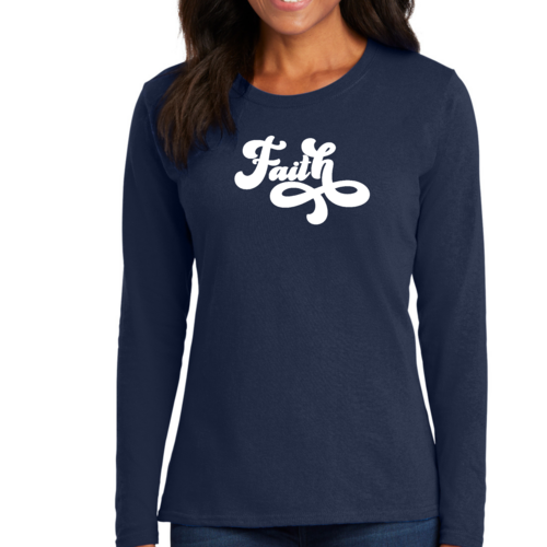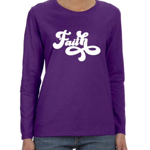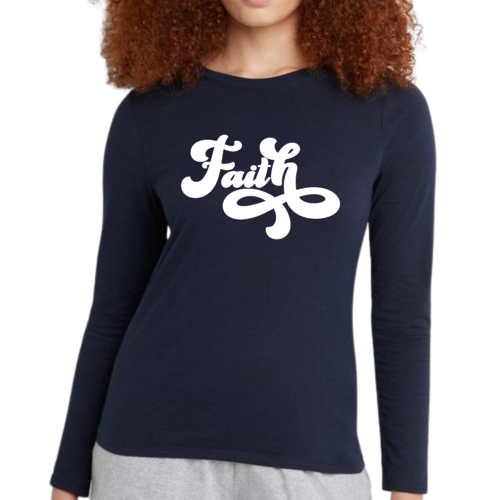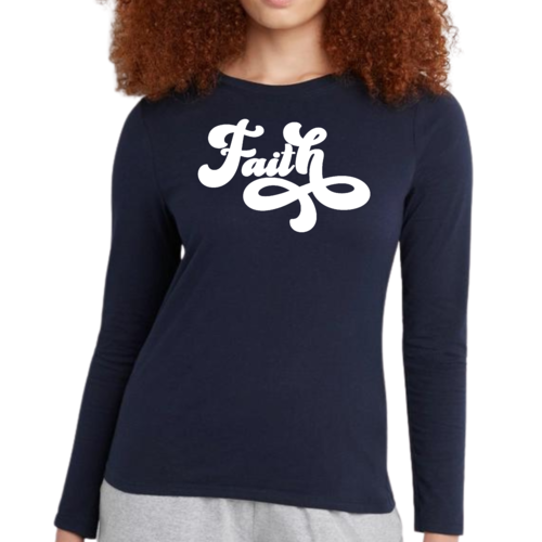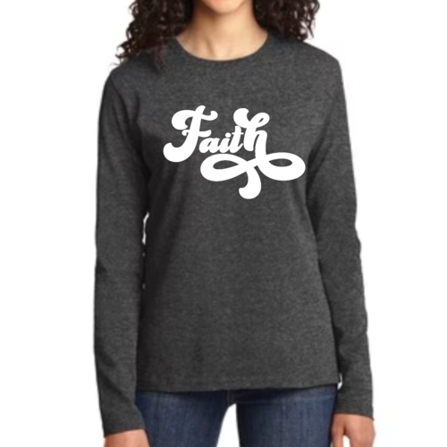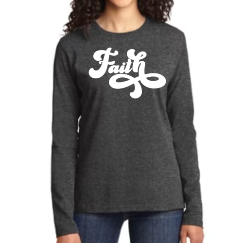 Introducing our Women's Long Sleeve Graphic T-shirt, featuring a beautiful Faith Script illustration that embodies both style and comfort. This premium t-shirt is designed for women who appreciate quality and want to express their faith through fashion. Made from soft, breathable cotton, this long sleeve tee is perfect for layering or wearing on its own, making it a versatile addition to any wardrobe.