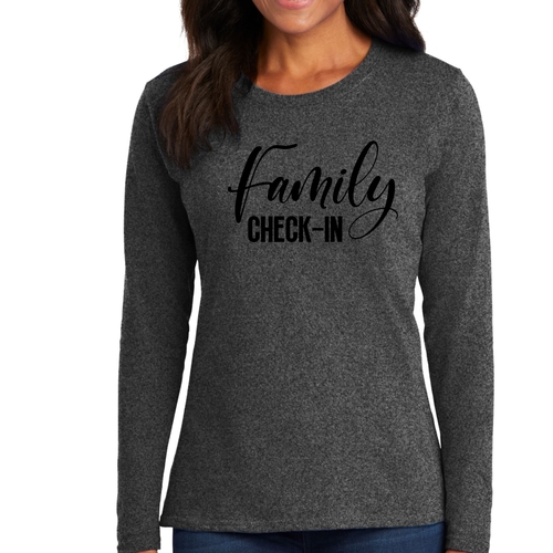 Introducing our Womens Long Sleeve Graphic T-shirt, a stylish and comfortable choice for any family occasion. Featuring a charming Family Check-in illustration, this tee is perfect for family reunions, casual outings, or simply lounging at home. Made from soft, preshrunk cotton, this shirt ensures that you stay comfortable while looking great.
