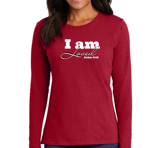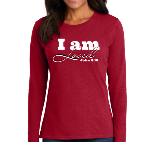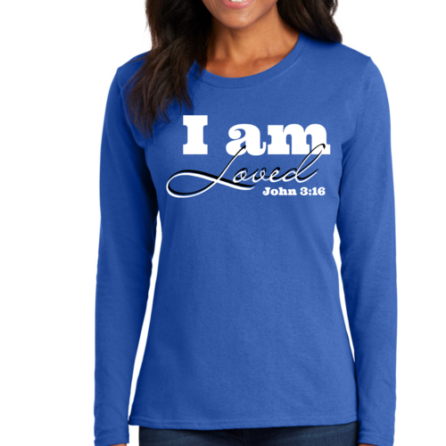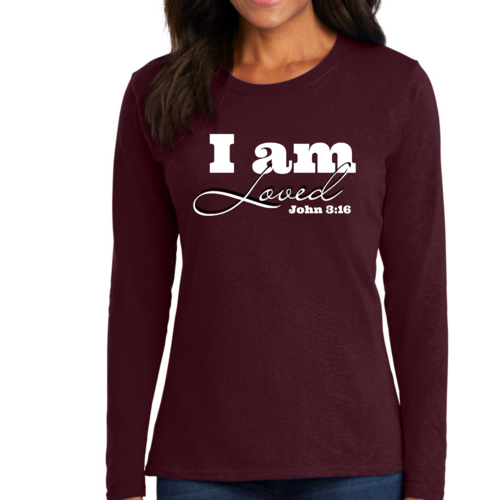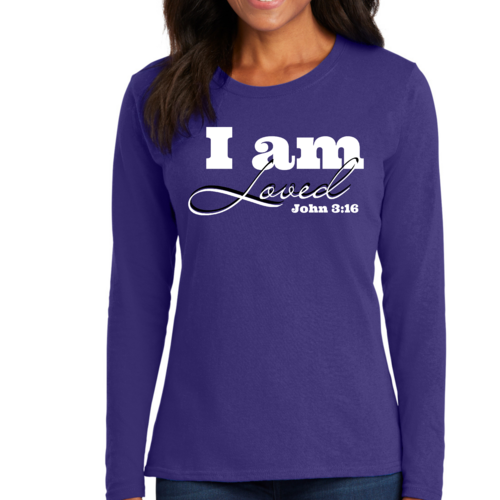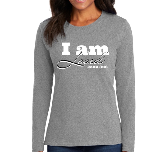 In summary, our Women's Long Sleeve Graphic T-shirt featuring the 'I Am Loved' John 3:16 verse is the perfect blend of comfort, style, and inspiration. Whether you're wearing it for yourself or gifting it to someone special, this T-shirt is sure to be a cherished addition to any wardrobe.