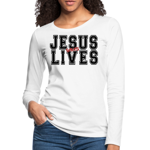 Introducing our Women's Long Sleeve Graphic T-shirt, a perfect blend of style, comfort, and durability. This t-shirt features a striking 'Jesus Saves Lives' graphic in bold black and red colors, making it a standout piece in any wardrobe. Whether you're heading to a casual outing or looking for a comfortable top to wear at home, this t-shirt is designed to meet your needs.
