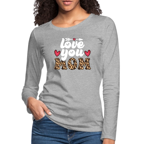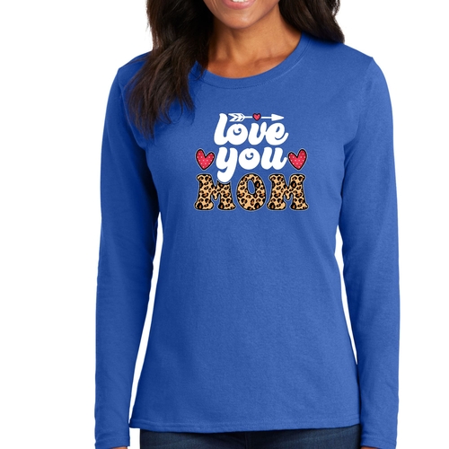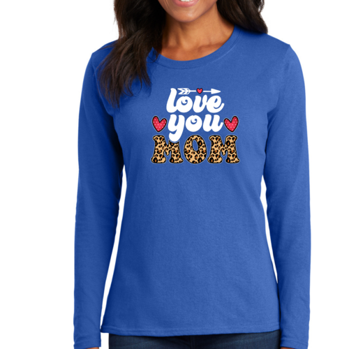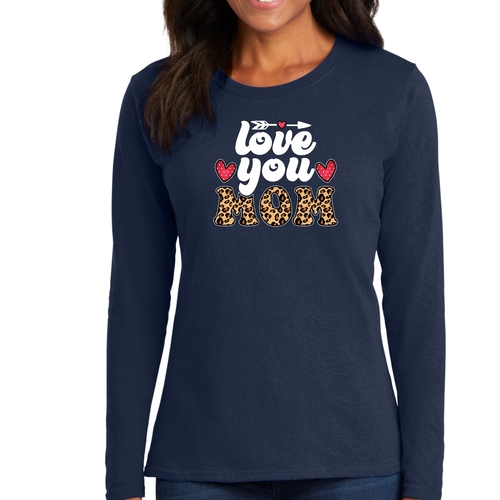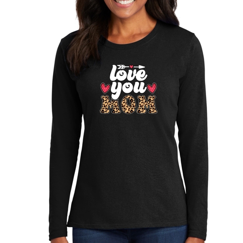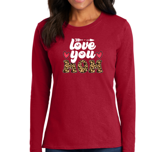 Introducing our Women's Long Sleeve Graphic T-shirt, a perfect blend of comfort and style, designed to celebrate the special bond between mothers and their children. This T-shirt features a charming 'Love You Mom' leopard print design that is not only trendy but also serves as a heartfelt tribute to mothers everywhere. Made from high-quality preshrunk cotton, this tee ensures that you enjoy its softness and fit wash after wash.