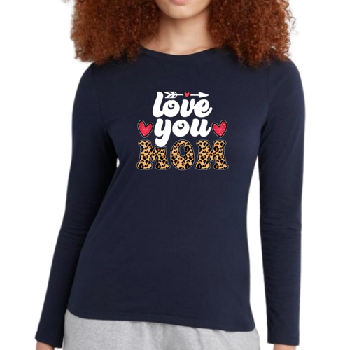In summary, our Women's Long Sleeve Graphic T-shirt with the 'Love You Mom' leopard print is a must-have for anyone looking to celebrate their mother in style. With its soft fabric, classic fit, and unique design, it’s the perfect addition to any wardrobe. Whether you're treating yourself or gifting it to a loved one, this T-shirt is sure to bring joy and comfort.