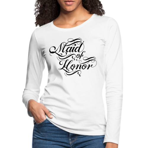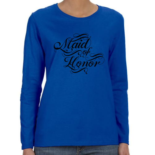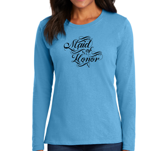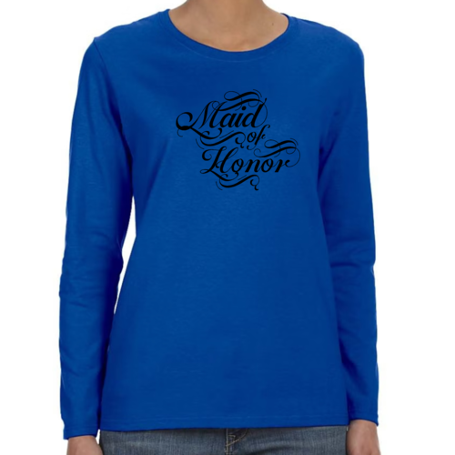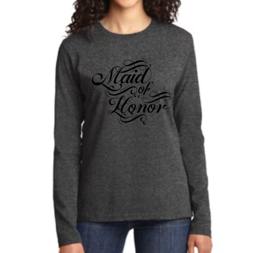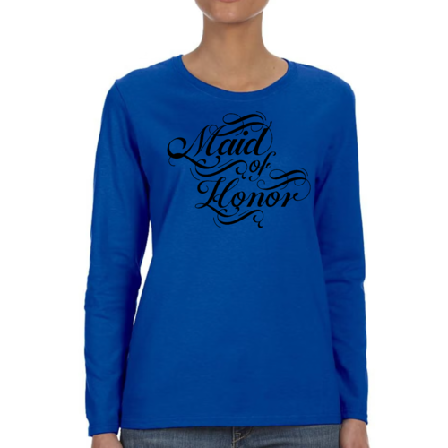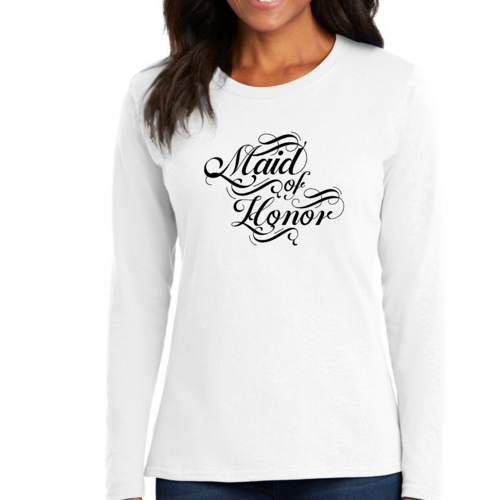 Introducing our Women's Long Sleeve Graphic T-shirt, designed specifically for the Maid of Honor. This stylish and comfortable t-shirt is perfect for bridal parties, wedding events, or casual outings. Made from high-quality cotton, it offers a soft touch against the skin, ensuring you feel great while looking fabulous.
