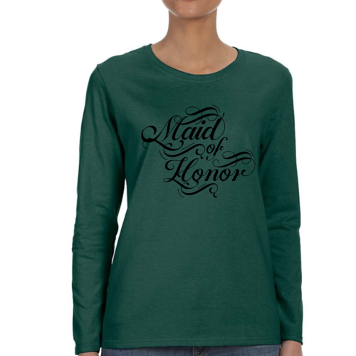 In summary, our Women's Long Sleeve Graphic T-shirt is the perfect blend of style, comfort, and durability. Whether you're preparing for the big day or celebrating with friends, this t-shirt is an essential piece for any Maid of Honor. Don't miss out on the opportunity to showcase your special role with this fashionable and functional t-shirt!