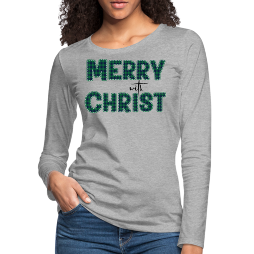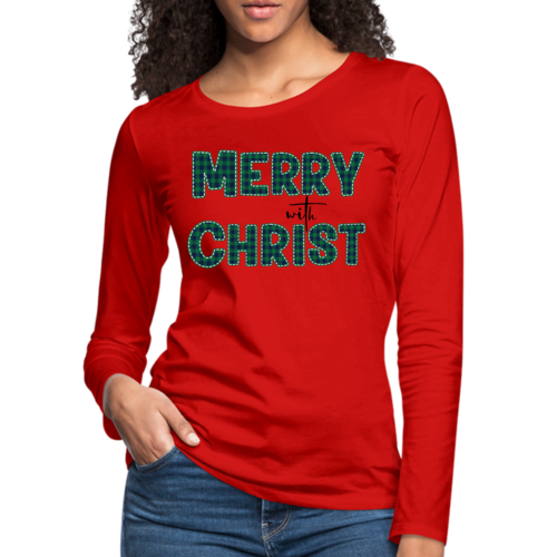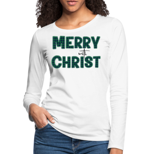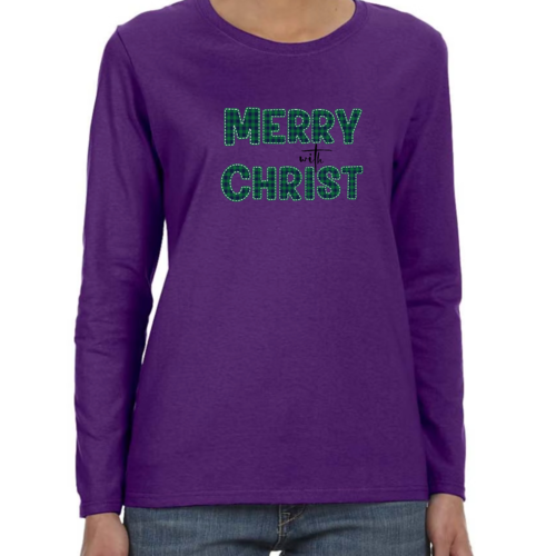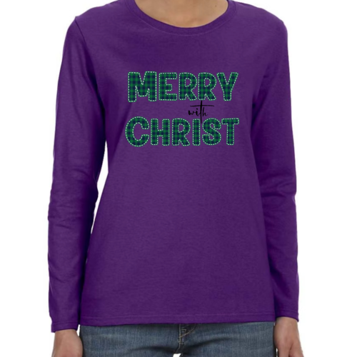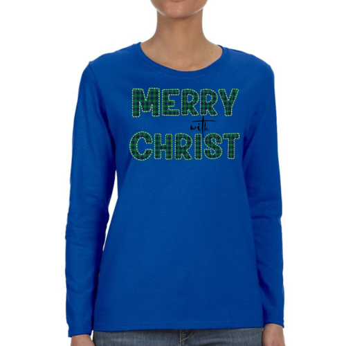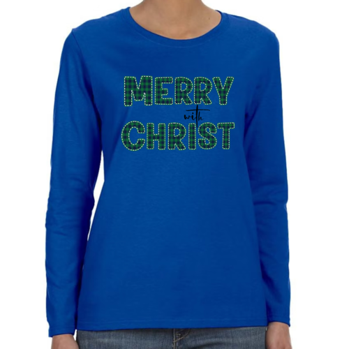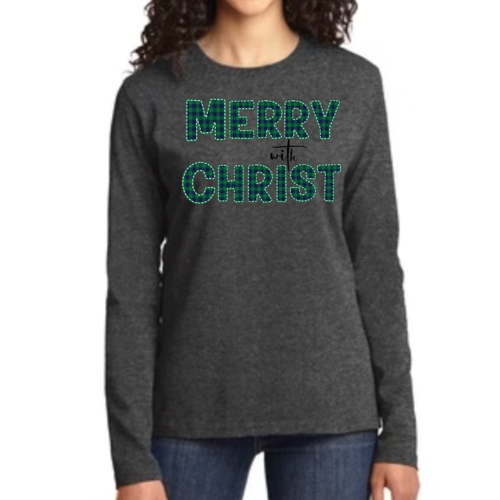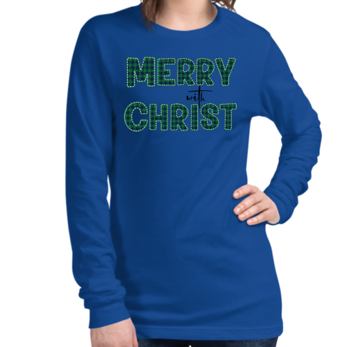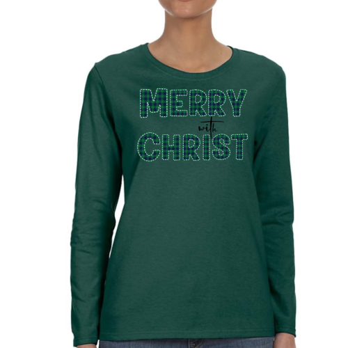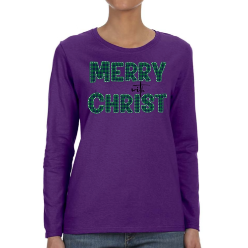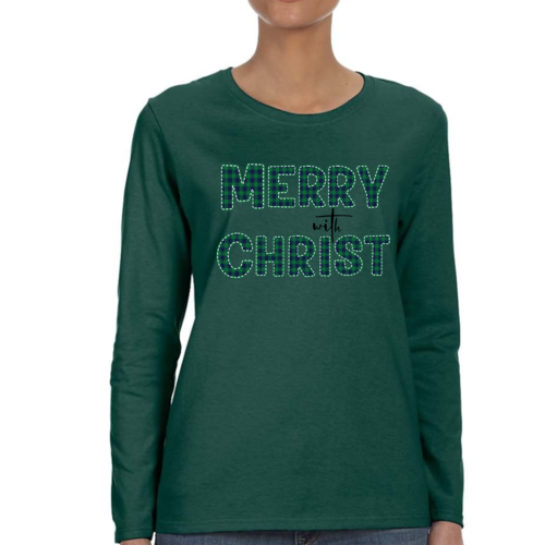 Introducing our Women's Long Sleeve Graphic T-shirt, a perfect blend of style and comfort. This t-shirt features a festive 'Merry with Christ' design set against a trendy green plaid background, making it an ideal choice for the holiday season. Crafted from premium cotton material, this shirt is not only soft to the touch but also durable enough to withstand regular wear. Whether you're attending a holiday gathering or simply enjoying a cozy day at home, this t-shirt is a must-have addition to your wardrobe.