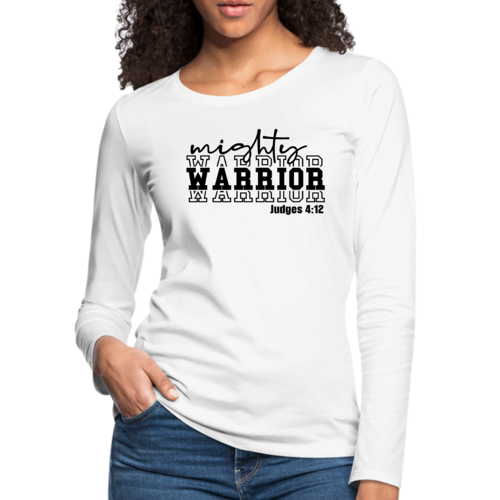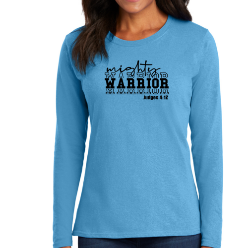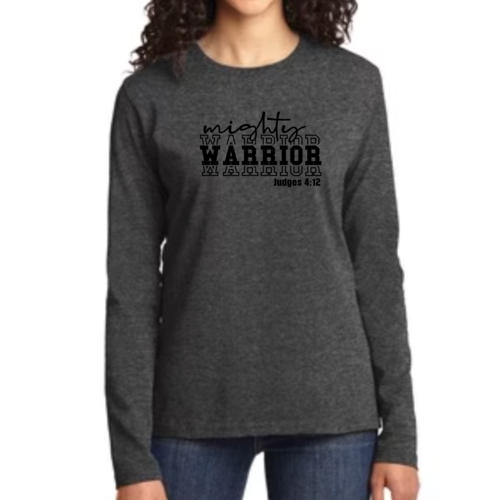 Introducing our Women's Long Sleeve Graphic T-shirt featuring the striking Mighty Warrior Black Illustration. This premium long sleeve t-shirt is designed for those who value both style and comfort. Made from high-quality cotton, it offers a soft touch against the skin, making it an ideal choice for everyday wear. Whether you're lounging at home, running errands, or meeting friends, this t-shirt will keep you looking stylish and feeling great.
