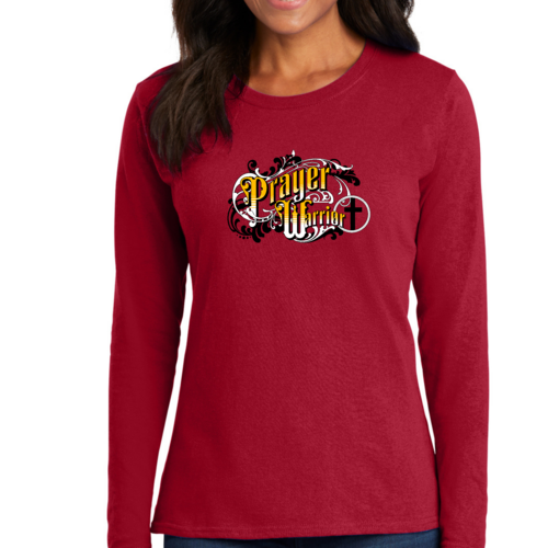In summary, our Women's Long Sleeve Graphic T-shirt featuring a Prayer Warrior design in Victorian style is a must-have addition to your wardrobe. With its premium cotton material, durable construction, unique design, and versatility, it’s perfect for anyone looking to combine comfort with style. Don’t miss out on the opportunity to express your faith through fashion with this beautiful t-shirt.