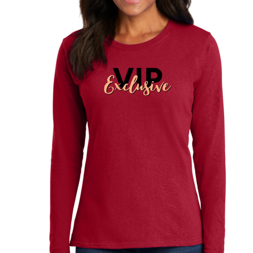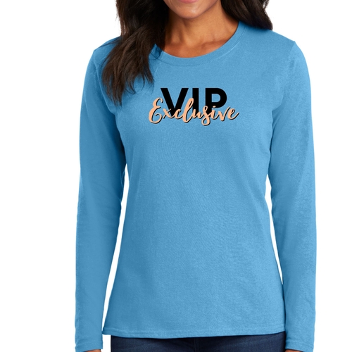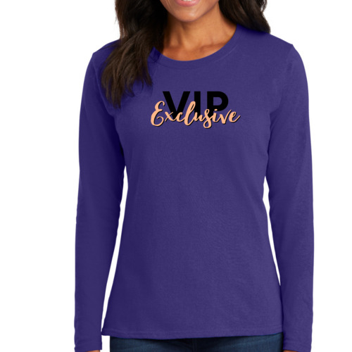 Introducing our Women's Long Sleeve Graphic T-shirt in VIP Exclusive Black and Beige, a perfect blend of style and comfort. This long sleeve cotton t-shirt is designed to be your go-to choice for any season, whether you're looking for a cozy fall shirt, a stylish option for spring, or a warm companion during winter. Crafted from breathable cotton, this t-shirt ensures you stay comfortable while making a fashion statement.