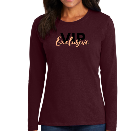 Dropship Womens Long Sleeve Graphic T-shirt - Vip Exclusive Black and Beige -