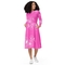 Womens Long Sleeve Midi Dress in Pink Floral with fitted waist, flared bottom, and side pockets, perfect for any occasion.