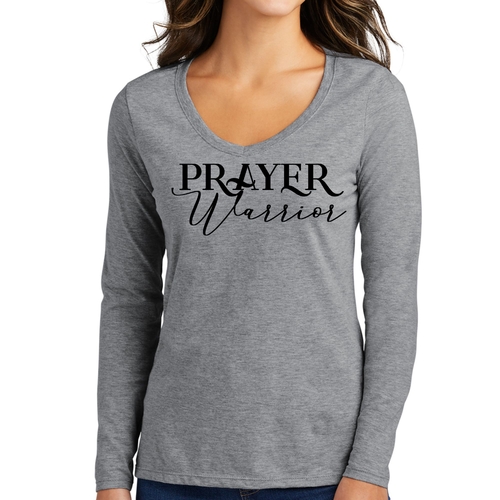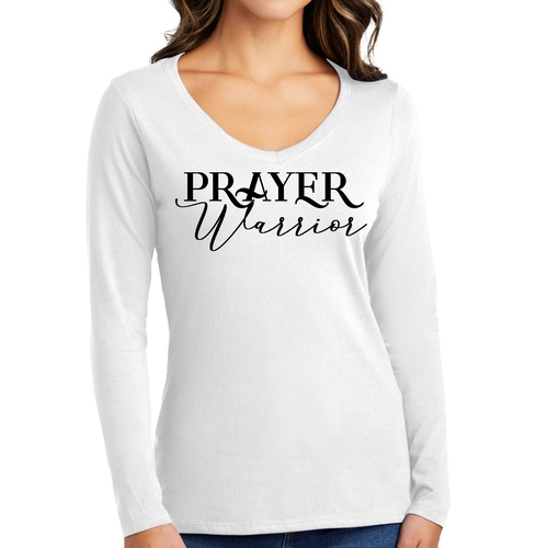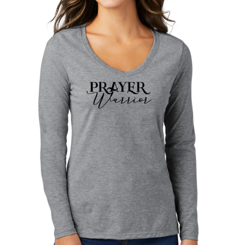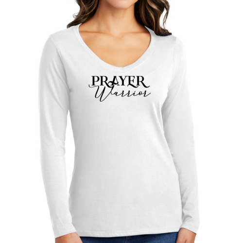 Introducing our Women's Long Sleeve V-neck Graphic T-shirt, designed for those who embrace their faith and seek comfort in their everyday wear. This T-shirt features a beautiful 'Prayer Warrior' script that serves as a reminder of strength and inspiration. Made from high-quality preshrunk cotton, this tee is not only soft to the touch but also retains its shape and size after washing, ensuring that you can wear it confidently time and time again.