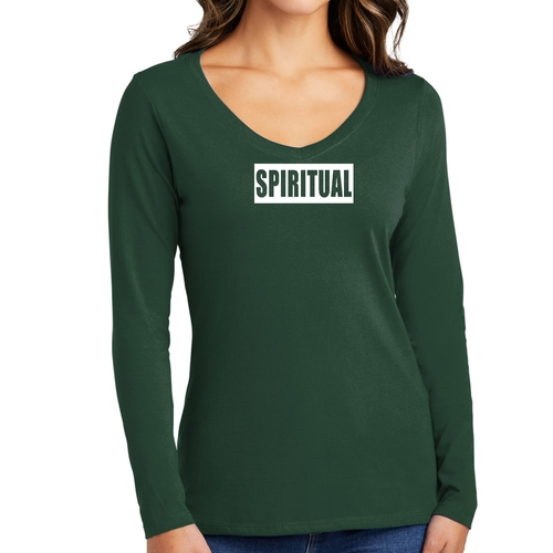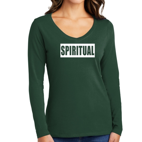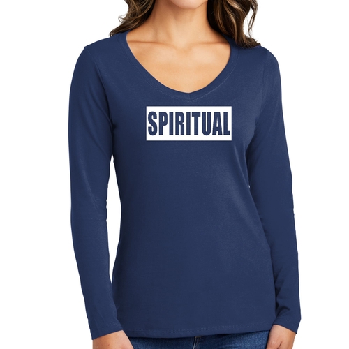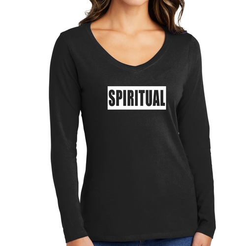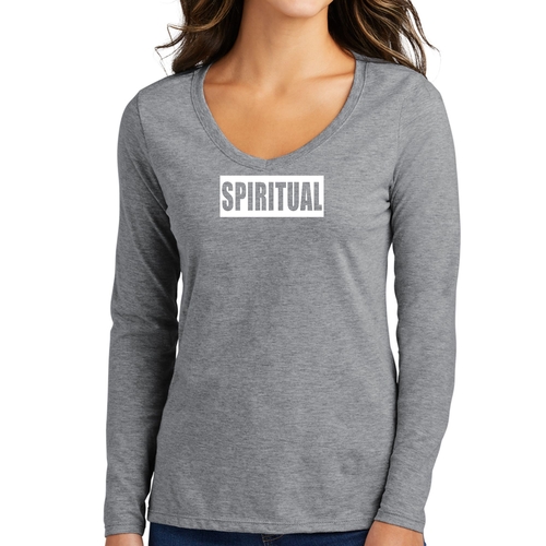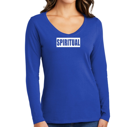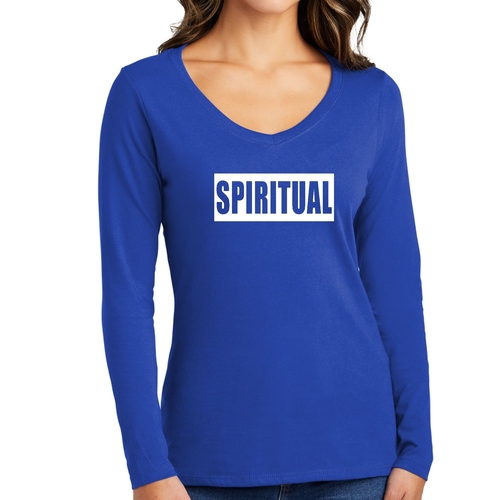 Introducing our Women's Long Sleeve V-neck Graphic T-shirt in Spiritual White Colorblock, a perfect blend of style and comfort. This versatile t-shirt is designed to be your go-to choice for any season, whether you're looking for a cozy fall outfit, a stylish spring layer, or a comfortable winter companion. Made from breathable cotton, this long sleeve tee ensures you stay comfortable while looking fashionable.