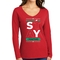 Our Women's Long Sleeve V-neck Graphic T-shirt is designed with a classic fit that fits true to size. Whether you are dressing up for a casual outing or lounging at home, this tee is versatile enough to suit any occasion. Available in a range of sizes, you can find the perfect fit for your body type.