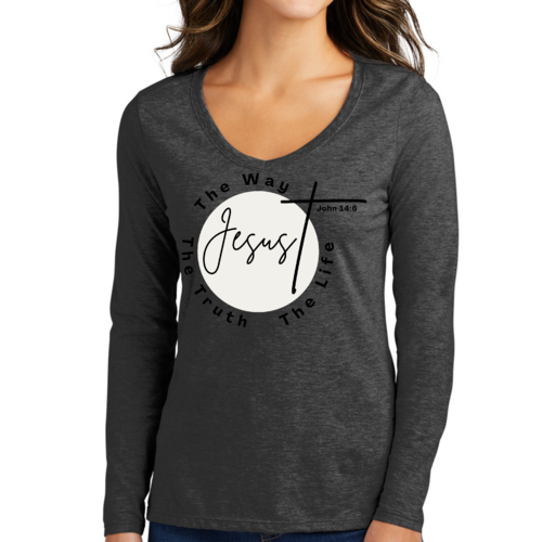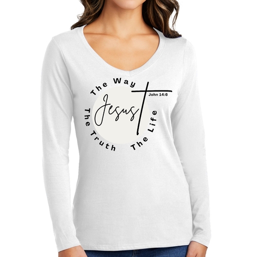 This Women's Long Sleeve V-neck Graphic T-shirt is not just a piece of clothing; it's a statement of faith. Whether you're attending a church service, going out with friends, or simply enjoying a cozy day at home, this tee serves as a reminder of your beliefs. The printed message 'The Truth The Way The Life' resonates with many, making it a thoughtful gift for friends and family who share your values.