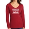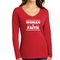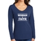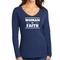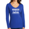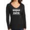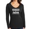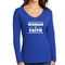 In summary, the Women's Long Sleeve V-neck Graphic T-shirt is more than just a piece of clothing; it's a statement of faith and a testament to comfort and quality. With its inspirational design, durable materials, and easy care instructions, this tee is a must-have for any wardrobe.