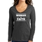 The Women's Long Sleeve V-neck Graphic T-shirt makes a thoughtful gift for friends and family who appreciate Christian inspiration and motivation. Whether it's for a birthday, holiday, or just because, this shirt is sure to bring a smile to their face and warmth to their heart.