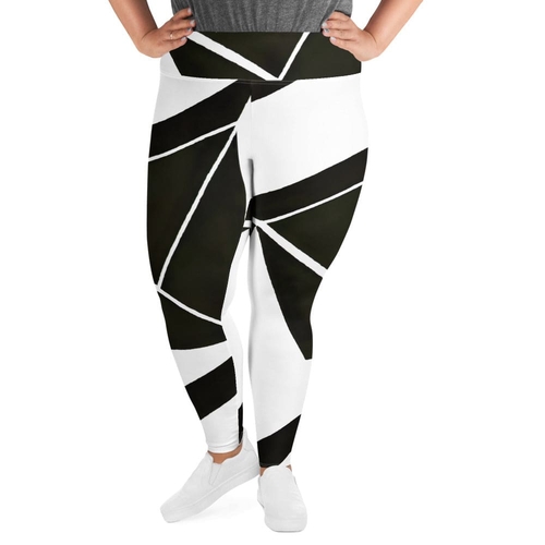 In summary, our Womens Plus Size Fitness Leggings in black and white geometric pattern are the perfect blend of style, comfort, and durability. Whether you're hitting the gym or enjoying a relaxing day at home, these leggings will keep you looking and feeling great.