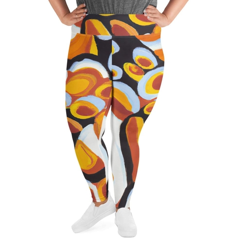 In summary, our Womens Plus Size Fitness Leggings in orange, black, and white geometric print are the perfect blend of style, comfort, and durability. With features designed for your active lifestyle, these leggings will quickly become your go-to choice for any activity. Don't miss out on the opportunity to elevate your wardrobe with these essential leggings!