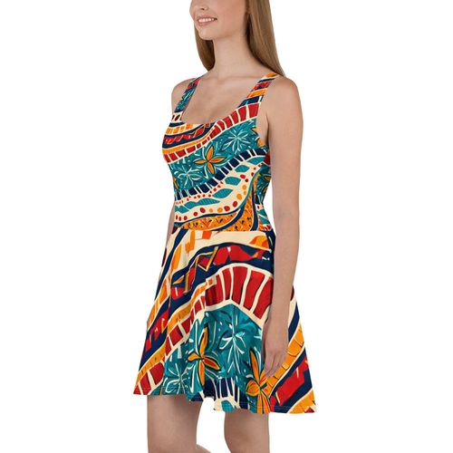 Each Women's Skater Dress is handcrafted with care, ensuring that you receive a unique piece that stands out from the rest. The attention to detail in the craftsmanship is evident, making this dress not just a piece of clothing, but a work of art that you can wear with pride.