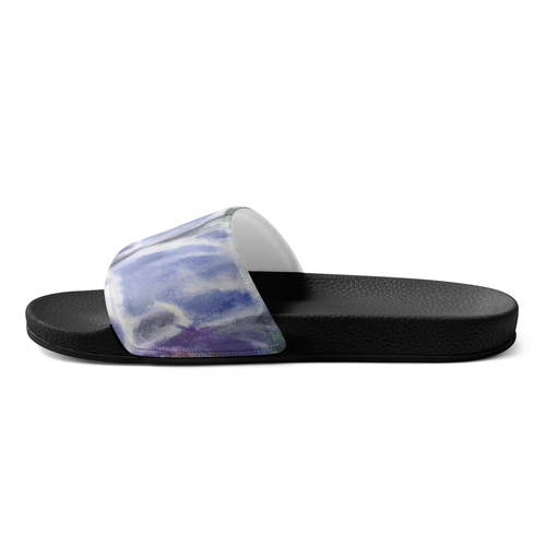 In summary, our Women’s Slides featuring a purple watercolor waterfall design are the perfect blend of style, comfort, and durability. Whether you’re heading to the beach, lounging by the pool, or simply enjoying a sunny day, these slides will keep your feet comfortable and looking fabulous.