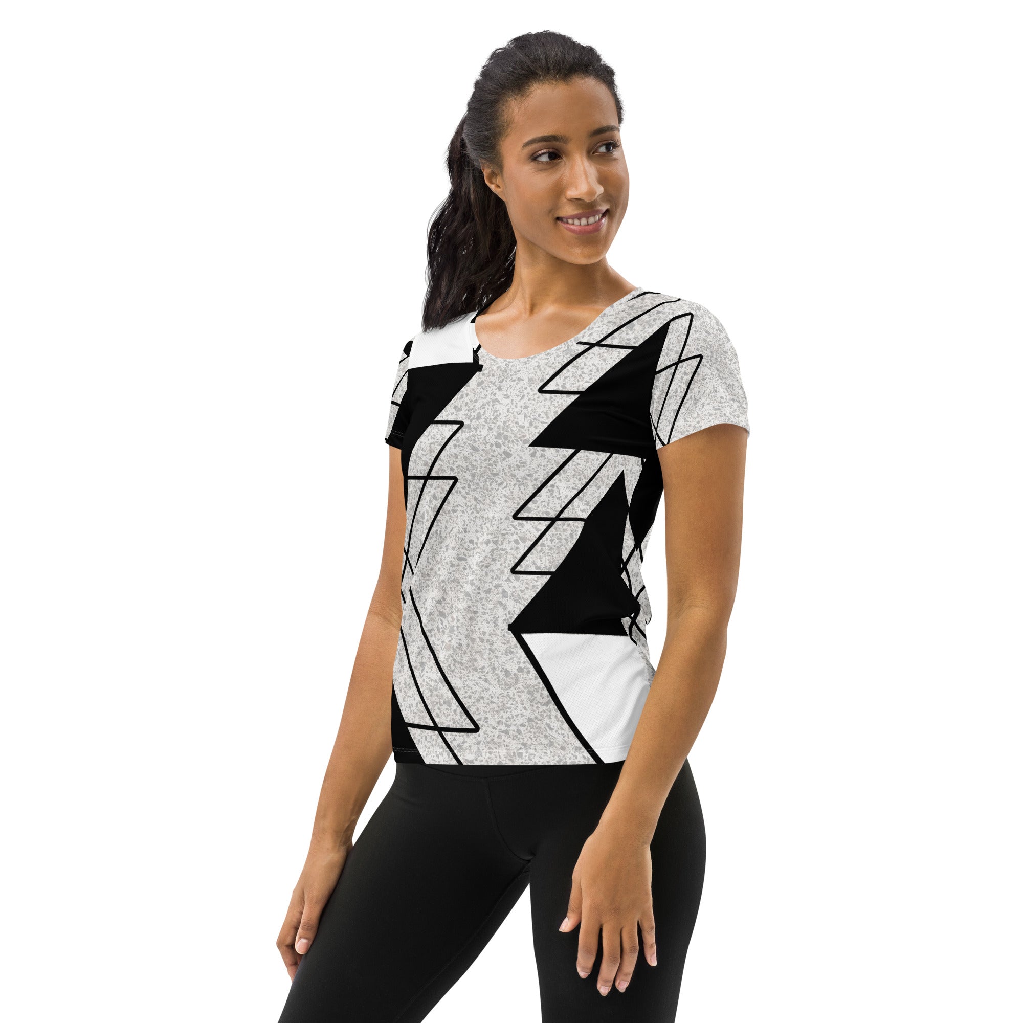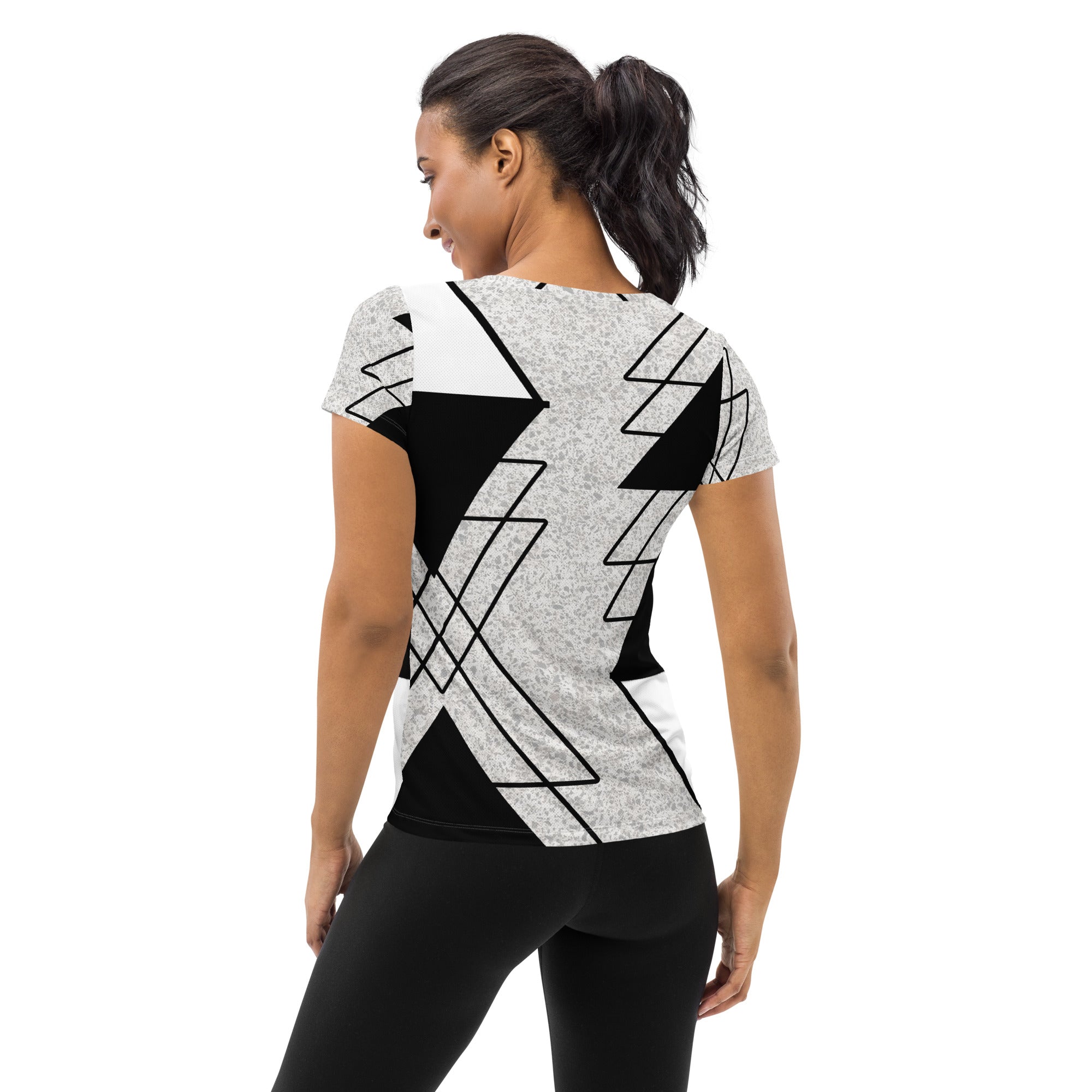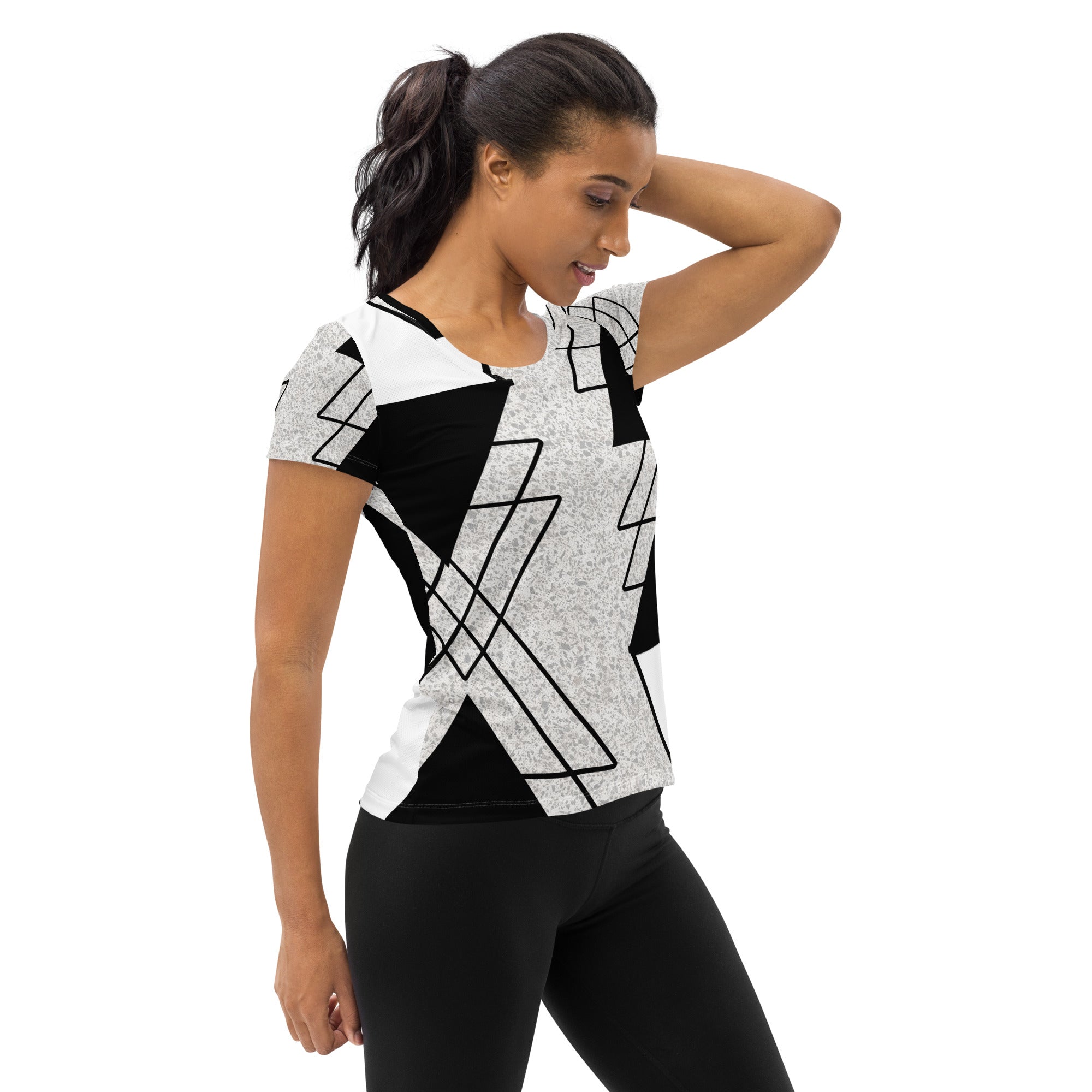 Introducing the Women's Stretch Fit Athletic Sports T-shirt in Black and White Ash Grey, a perfect blend of style and functionality designed for the modern woman. This t-shirt is engineered to enhance your performance and comfort during workouts, making it an essential addition to your athletic wardrobe.