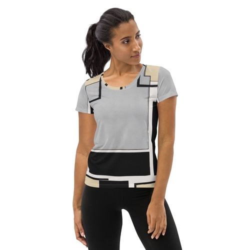 In summary, the Women's Stretch Fit Athletic Sports T-shirt in black grey abstract is the perfect blend of style, comfort, and functionality. Upgrade your activewear collection today and experience the difference that quality athletic apparel can make in your performance.