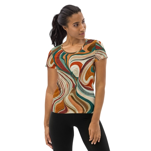 In summary, our Women's Stretch Fit Athletic Sports T-shirt in Boho Brown Marble Print is the perfect blend of style, comfort, and performance. With its premium fabric, moisture-wicking technology, and durable construction, it’s designed to meet the demands of your active lifestyle. Don’t miss out on the opportunity to elevate your workout wardrobe with this essential piece.