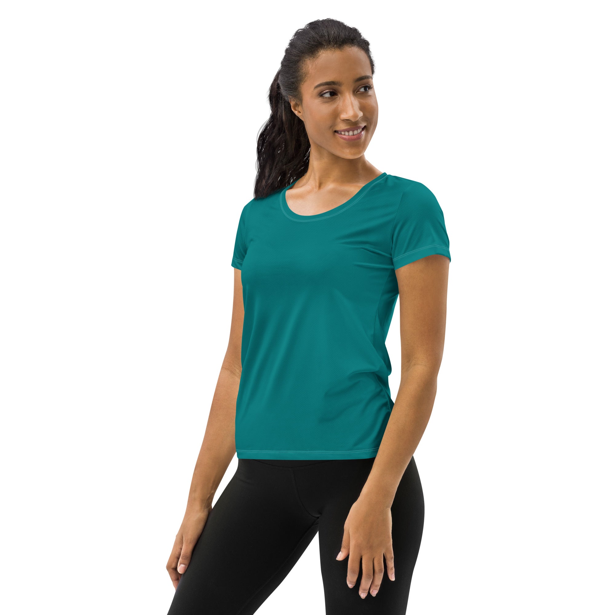 In summary, the Women's Stretch Fit Athletic Sports T-shirt in Dark Teal Green is more than just a piece of clothing; it's a performance-enhancing tool designed for the modern woman. With its combination of comfort, style, and durability, this t-shirt is sure to become a staple in your activewear collection. Don't miss out on the opportunity to elevate your workout experience with this exceptional t-shirt!