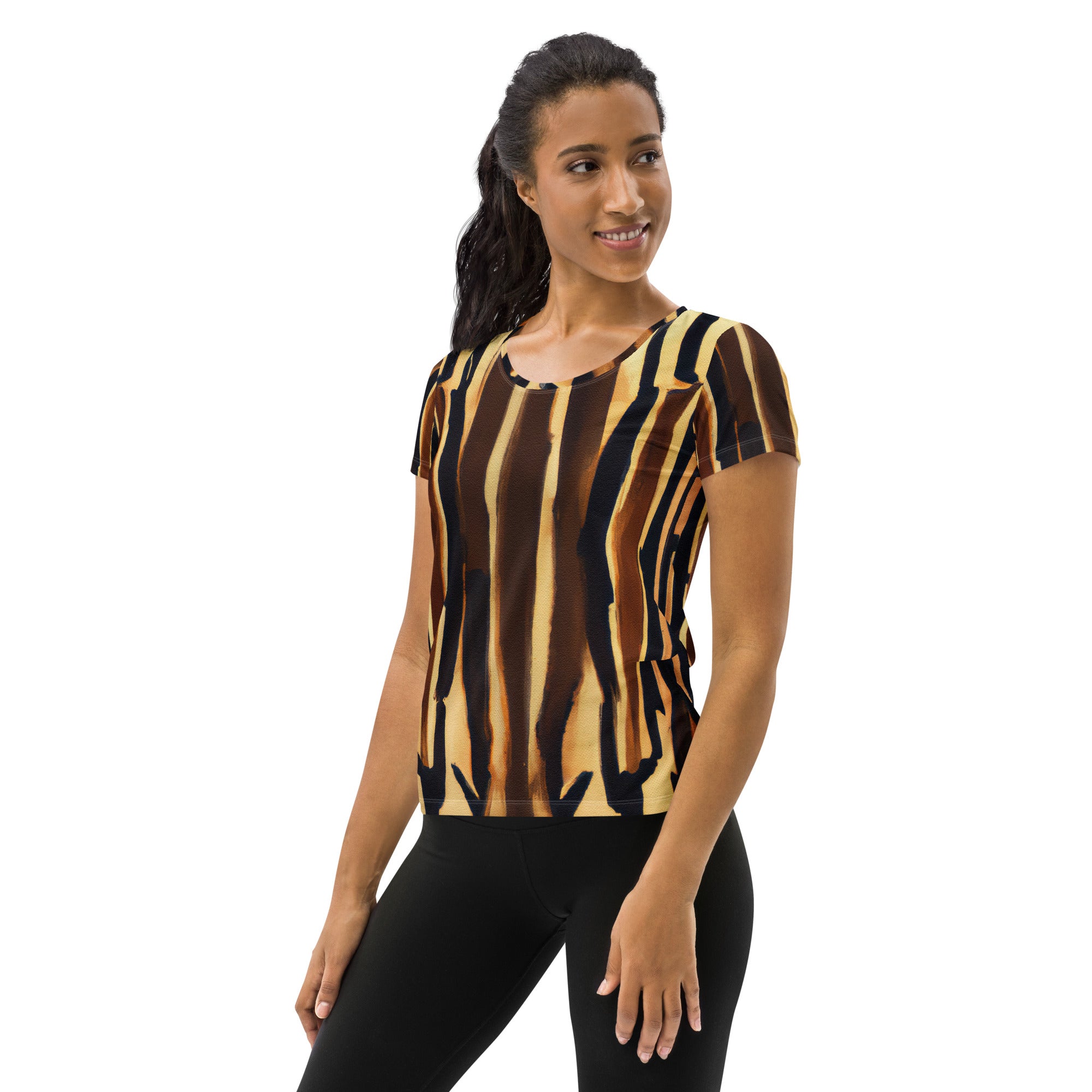 Women's Stretch Fit Athletic Sports T-shirt featuring a Zorse Lines geometric print, designed for comfort and performance during workouts.