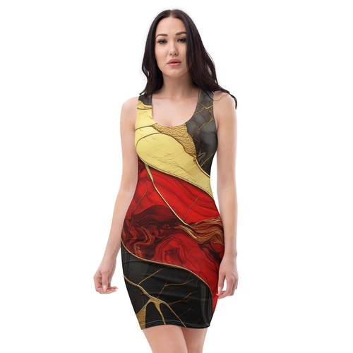 In summary, the Women's Stretch Fit Bodycon Dress in bold red and gold tones is a must-have for anyone looking to elevate their style. With its flattering fit, quality fabric, and versatile design, this dress is perfect for any occasion. Don't miss out on the opportunity to make a statement and look fabulous!