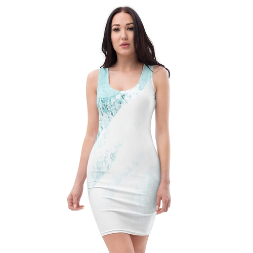 Introducing the Women's Stretch Fit Bodycon Dress in Subtle Abstract Ocean Blue, a perfect blend of style and comfort. This stunning dress is designed to accentuate your curves while providing a snug yet comfortable fit. Made from high-quality materials, this dress is ideal for various occasions, from casual outings to elegant parties.