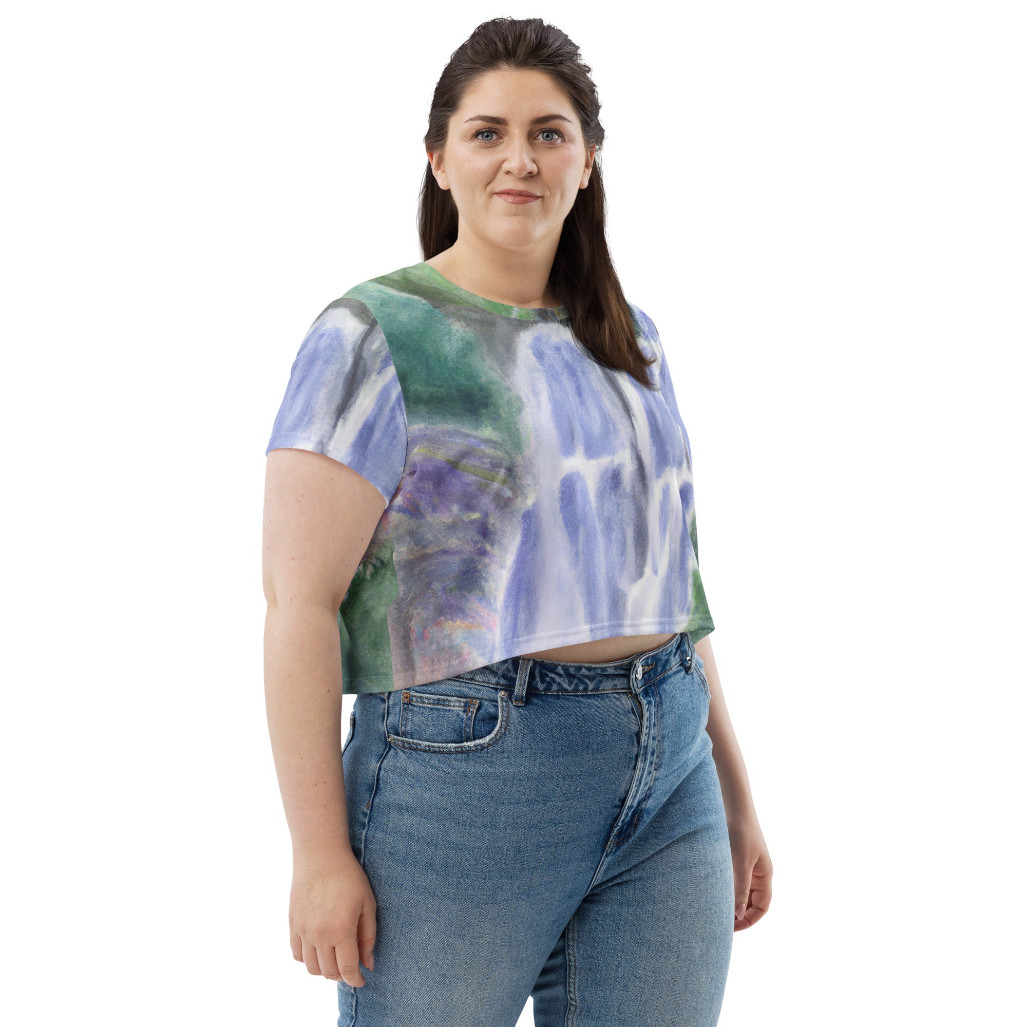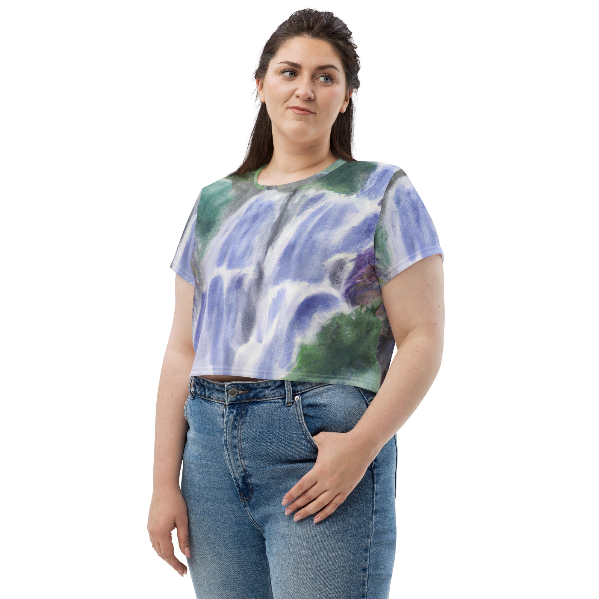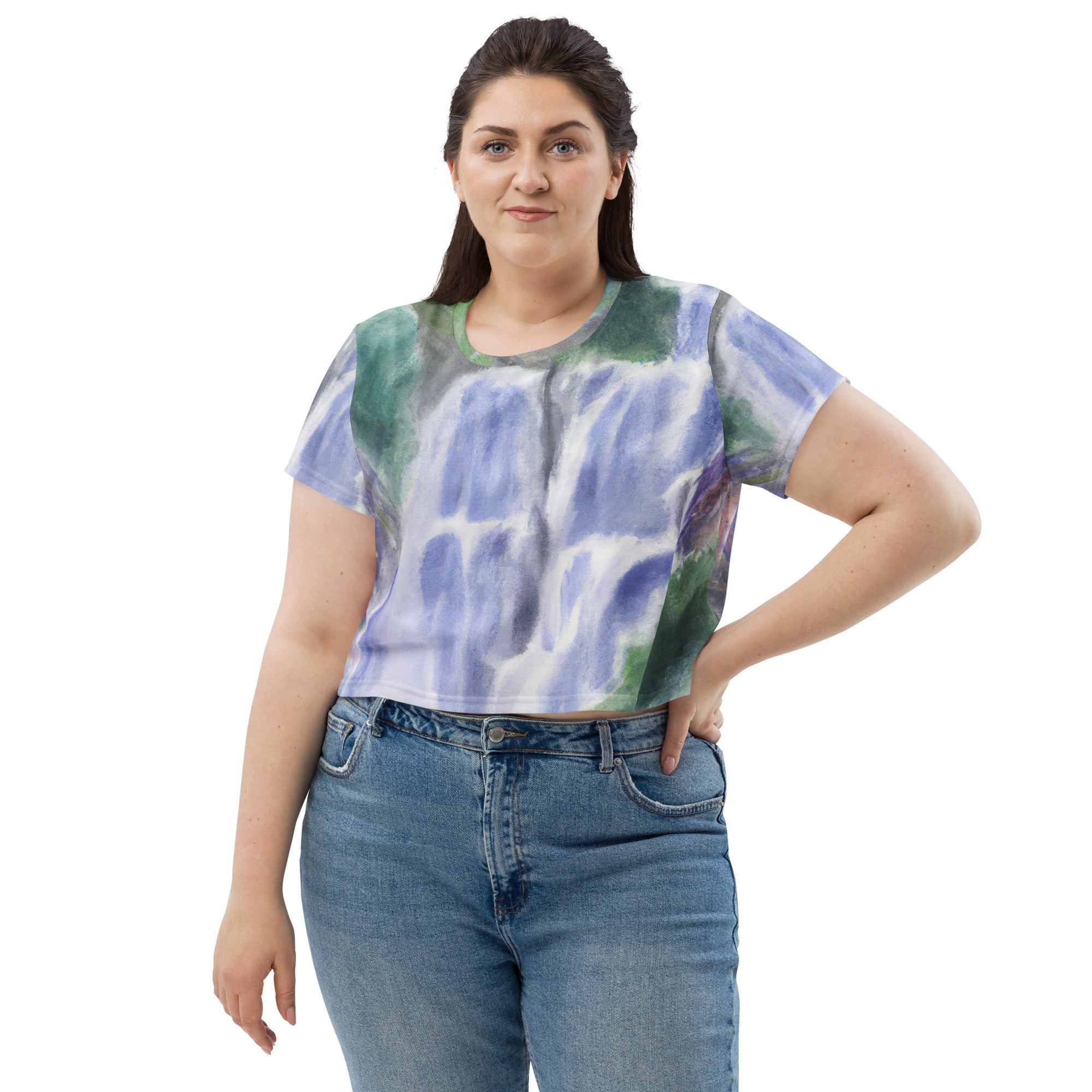 Whether you're dressing it up for a night out or keeping it casual for a day at home, the Women's Stretch Fit Crop Tee in Purple Watercolor is the perfect versatile piece. Pair it with your favorite accessories to elevate your look or wear it simply for a relaxed vibe. This tee is designed to transition seamlessly from day to night, making it an essential item for any fashion-forward woman.