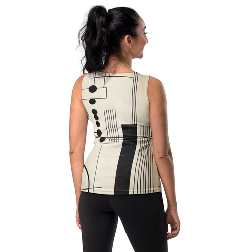 Introducing our Women's Stretch Fit Tank Top, a must-have addition to your wardrobe that combines style and comfort effortlessly. This tank top features an eye-catching abstract design in black, beige, and brown geometric shapes, making it a standout piece for any occasion. Whether you're dressing up for a casual outing or gearing up for an intense workout, this tank top is designed to keep you looking chic and feeling comfortable.