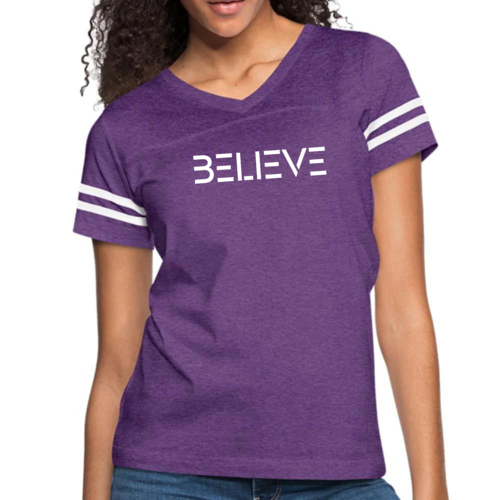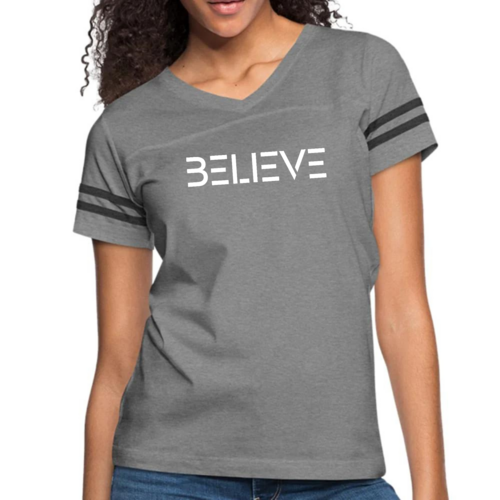 Introducing the Womens Vintage Sport Graphic T-shirt, featuring an inspiring 'Believe' print that motivates and uplifts. This stylish tee is designed for the modern woman who values both comfort and fashion. Whether you're hitting the gym, running errands, or simply lounging at home, this shirt is the perfect addition to your wardrobe.