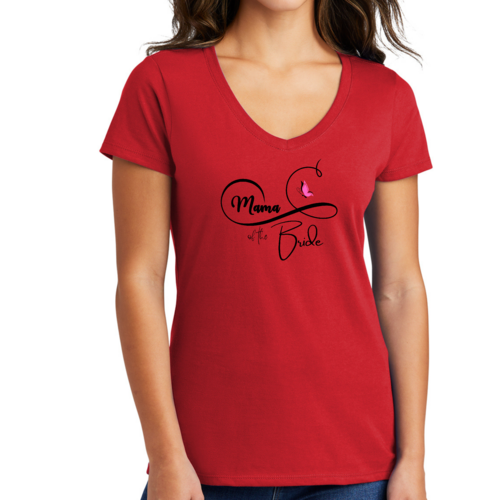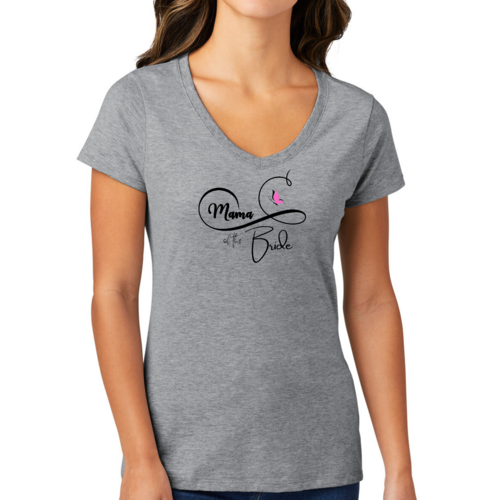 Don’t miss out on the chance to celebrate this joyous occasion in style. Our Womens V-neck Graphic T-shirt, Mama of the Bride, is a must-have for any mother looking to express her love and pride. With its comfortable fit, stylish design, and quality craftsmanship, it’s the perfect addition to your wedding wardrobe. Order yours today and be ready to shine on the big day!