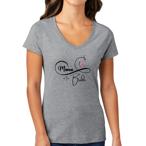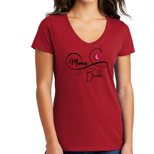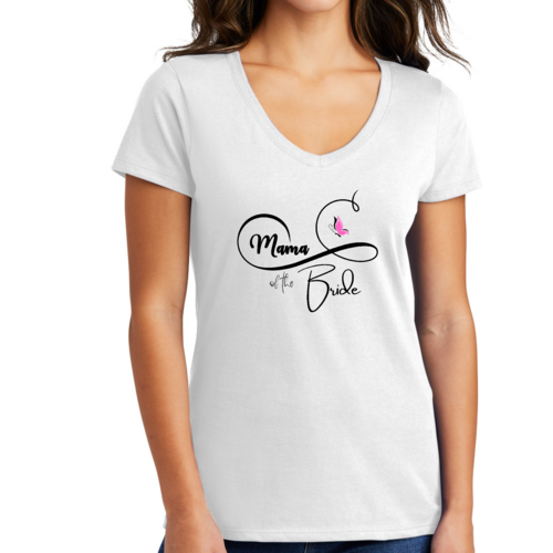 Introducing our Womens V-neck Graphic T-shirt, featuring the charming 'Mama of the Bride' design, perfect for celebrating the special day of your loved one. This stylish tee is not just a piece of clothing; it’s a statement of love and support for the bride on her big day. The beautiful pink butterfly illustration adds a touch of elegance, making it a delightful choice for any mother of the bride.