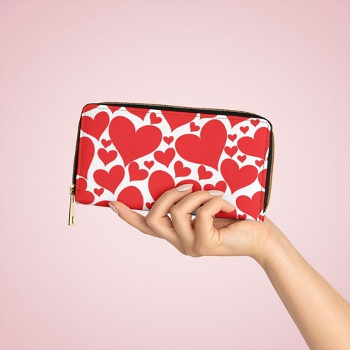 Introducing the Love Red Hearts Womens Wallet, a perfect blend of style and functionality. This zip purse is designed to cater to the modern woman who values both aesthetics and practicality. With its vibrant love red hearts design, this wallet is not just an accessory; it's a statement piece that complements any outfit. Whether you're heading out for a casual day or a night on the town, this wallet will keep your essentials organized and easily accessible.