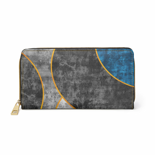 Introducing our Womens Zipper Wallet, a perfect blend of style and functionality. This wallet features a stunning black, blue, and grey circular geometric pattern print that adds a touch of elegance to your everyday essentials. Crafted from high-quality faux leather, this wallet is designed to withstand daily wear and tear while maintaining its chic appearance.