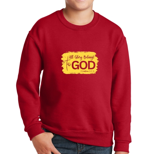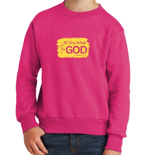 In summary, the Youth Graphic Sweatshirt featuring 'All Glory Belongs to God' is an excellent choice for young individuals who want to express their faith through fashion. With its durable construction, comfortable fit, and eye-catching design, this sweatshirt is sure to become a favorite in your child's wardrobe.