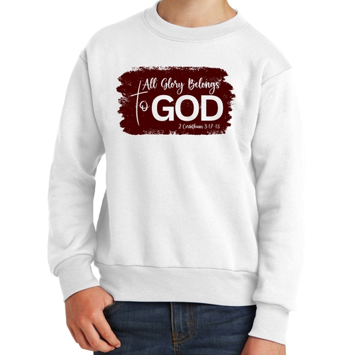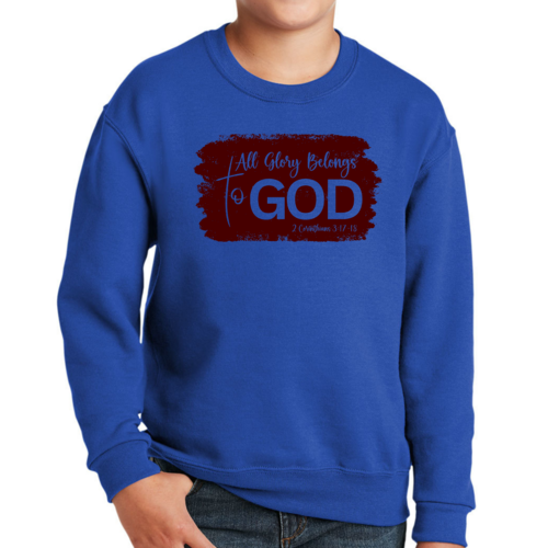 In summary, the Youth Graphic Sweatshirt featuring 'All Glory Belongs to God' is an essential addition to any young believer's wardrobe. With its durable construction, comfortable fit, and meaningful design, it is sure to become a favorite piece for years to come.