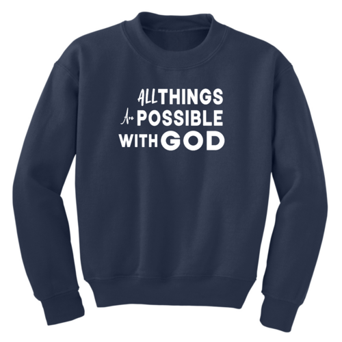 This sweatshirt is not just for casual wear; it can be dressed up or down depending on the occasion. Pair it with jeans for a laid-back look or with a skirt for a more polished outfit. The uplifting message, 'All Things are Possible with God,' makes it a wonderful choice for church events, youth group gatherings, or simply as a daily reminder of faith.