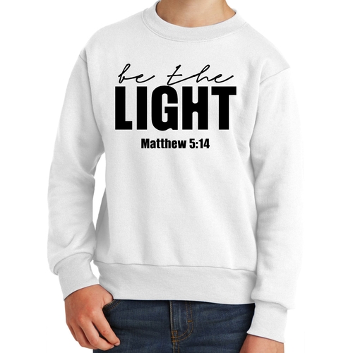 In summary, the Youth Graphic Sweatshirt featuring the 'Be The Light' inspirational art illustration is a must-have for any young person's wardrobe. With its durable construction, comfortable fit, and meaningful design, it is sure to become a favorite piece. Shop now and let your child wear their inspiration proudly!